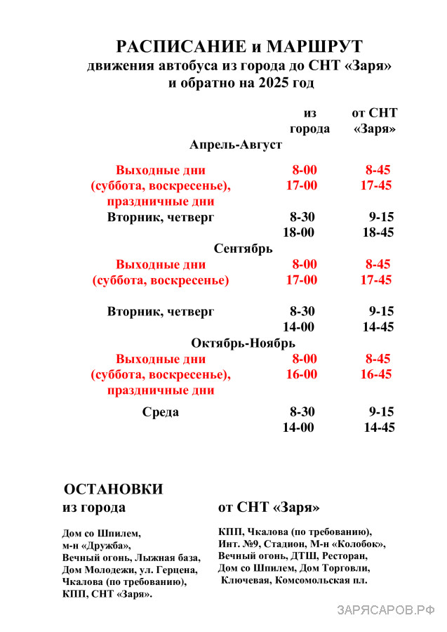 Подписаться на изменения новости: Расписание движения автобуса на 2025 год